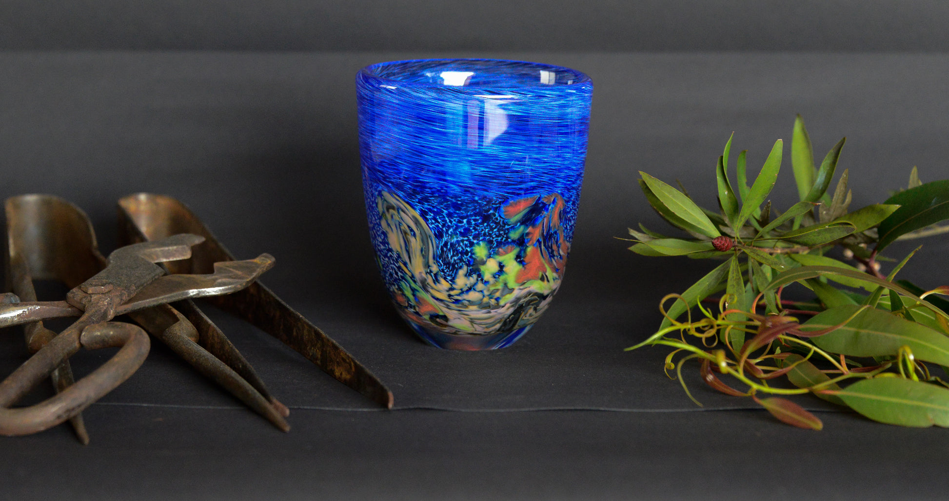 The process of shaping the glass is often time consuming and requires patience, but there are critical moments of intense activity and concentration. Each step in the process affects the outcome and the piece is often quite different to what is planned. Working with hot glass can be strenuous and exhausting. A large piece can take over an hour to make. After the blowing is finished the piece is cracked off the pipe and placed in an annealing oven which stops the glass from breaking. It's exciting to unload the oven a couple of days later and actually touch the glass for the first time. Then there's the job of cutting and grinding the pieces and putting them on display. Glass is durable but fragile, cool and smooth to the touch, alive with light and colour. Hot glass is a very challenging material to work with, technically and artistically. I find it most rewarding to turn a creative idea into a unique piece of art.