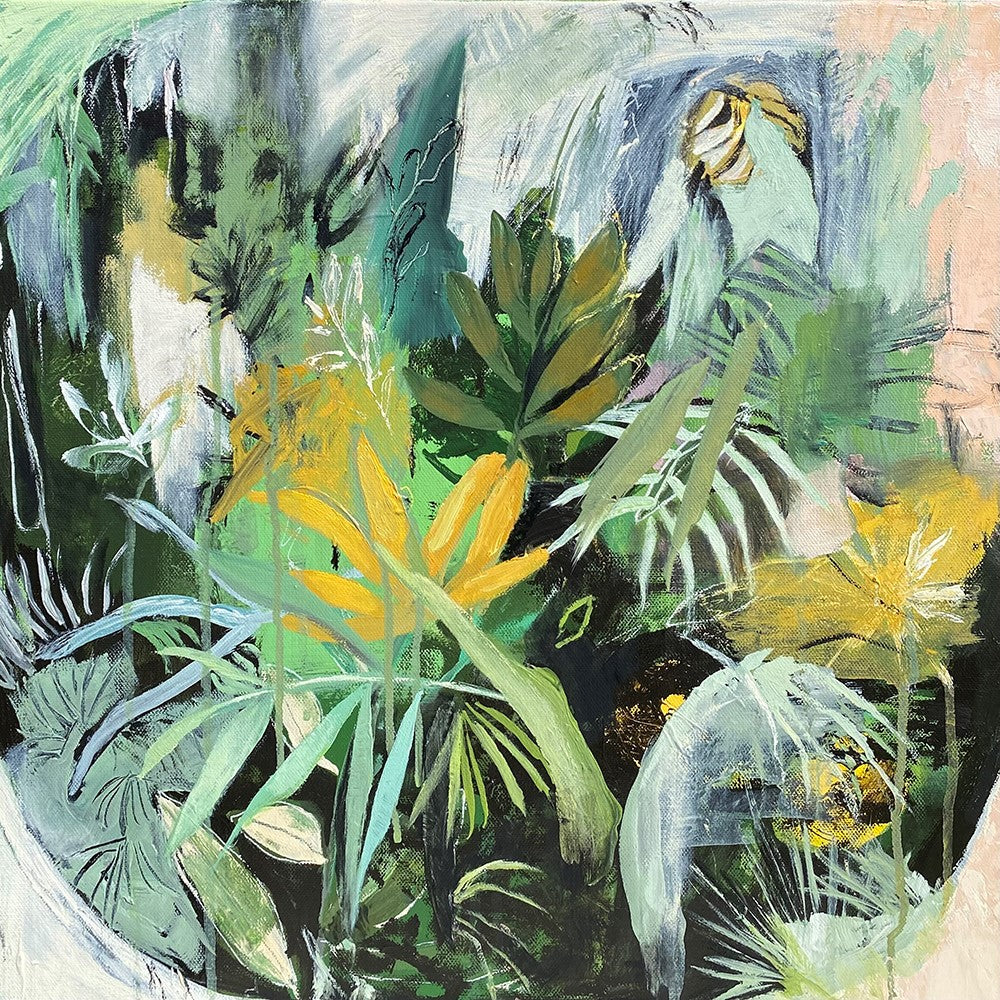After returning to Queensland, Kaz established her studio in Scarborough on the Redcliffe peninsula. The untamed landscapes surrounding her provide a constant wellspring of inspiration for her semi-abstract paintings. These artworks delve into recognizable organic forms while using abstraction to elicit a profound sense of the universe's vastness and unbridled nature.
