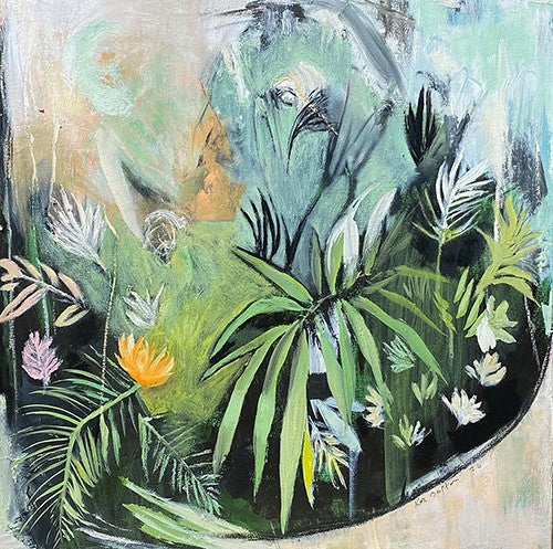 After returning to Queensland, Kaz established her studio in Scarborough on the Redcliffe peninsula. The untamed landscapes surrounding her provide a constant wellspring of inspiration for her semi-abstract paintings. These artworks delve into recognizable organic forms while using abstraction to elicit a profound sense of the universe's vastness and unbridled nature.