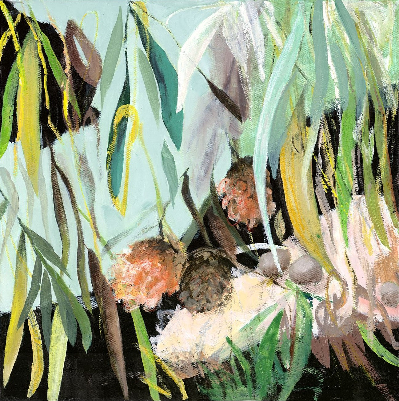 After returning to Queensland, Kaz established her studio in Scarborough on the Redcliffe peninsula. The untamed landscapes surrounding her provide a constant wellspring of inspiration for her semi-abstract paintings. These artworks delve into recognizable organic forms while using abstraction to elicit a profound sense of the universe's vastness and unbridled nature.
