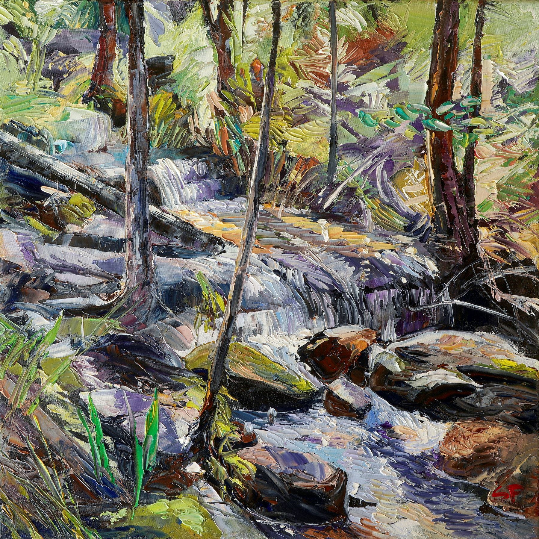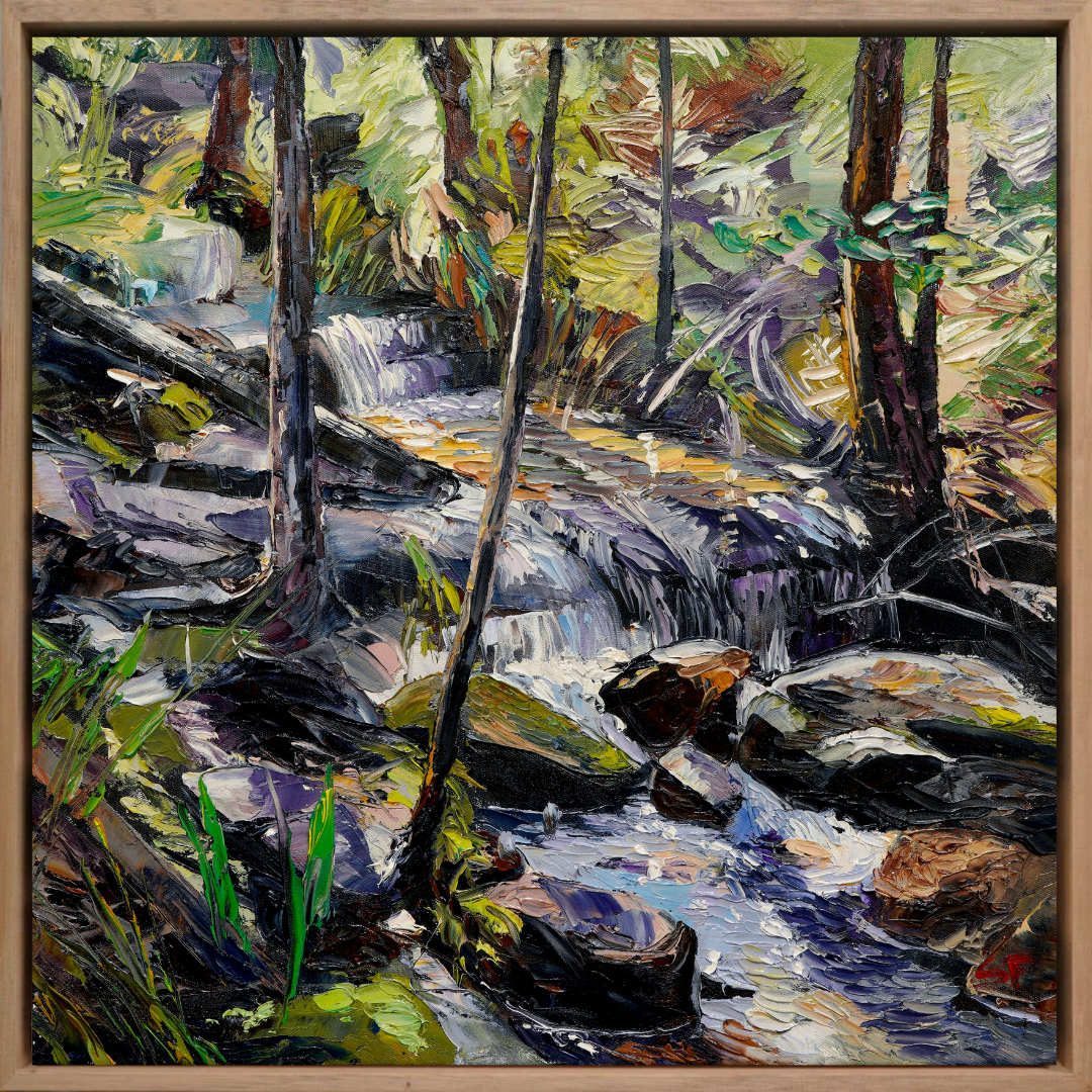 I am currently painting landscapes from around my home. They start as small ‘en plein air' works, then become large studio-completed paintings. I am motivated by the changing weather patterns effecting the area around Mulgoa, on the outskirts of Sydney. After five years of drought and annual fires, the rains came. And it rained for three years! I painted the flowing water and floods that occurred in my backyard, as well as observing the famous falls in the Blue Mountains.