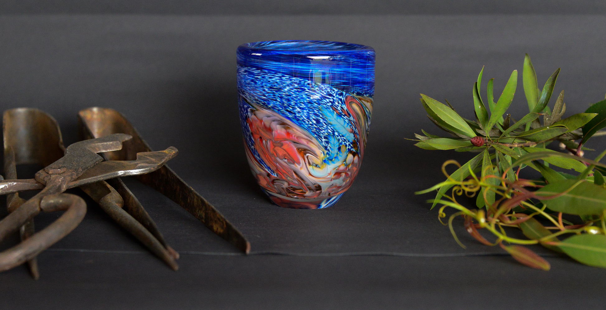 The process of shaping the glass is often time consuming and requires patience, but there are critical moments of intense activity and concentration. Each step in the process affects the outcome and the piece is often quite different to what is planned. Working with hot glass can be strenuous and exhausting. A large piece can take over an hour to make. After the blowing is finished the piece is cracked off the pipe and placed in an annealing oven which stops the glass from breaking. It's exciting to unload the oven a couple of days later and actually touch the glass for the first time. Then there's the job of cutting and grinding the pieces and putting them on display. Glass is durable but fragile, cool and smooth to the touch, alive with light and colour. Hot glass is a very challenging material to work with, technically and artistically. I find it most rewarding to turn a creative idea into a unique piece of art.
