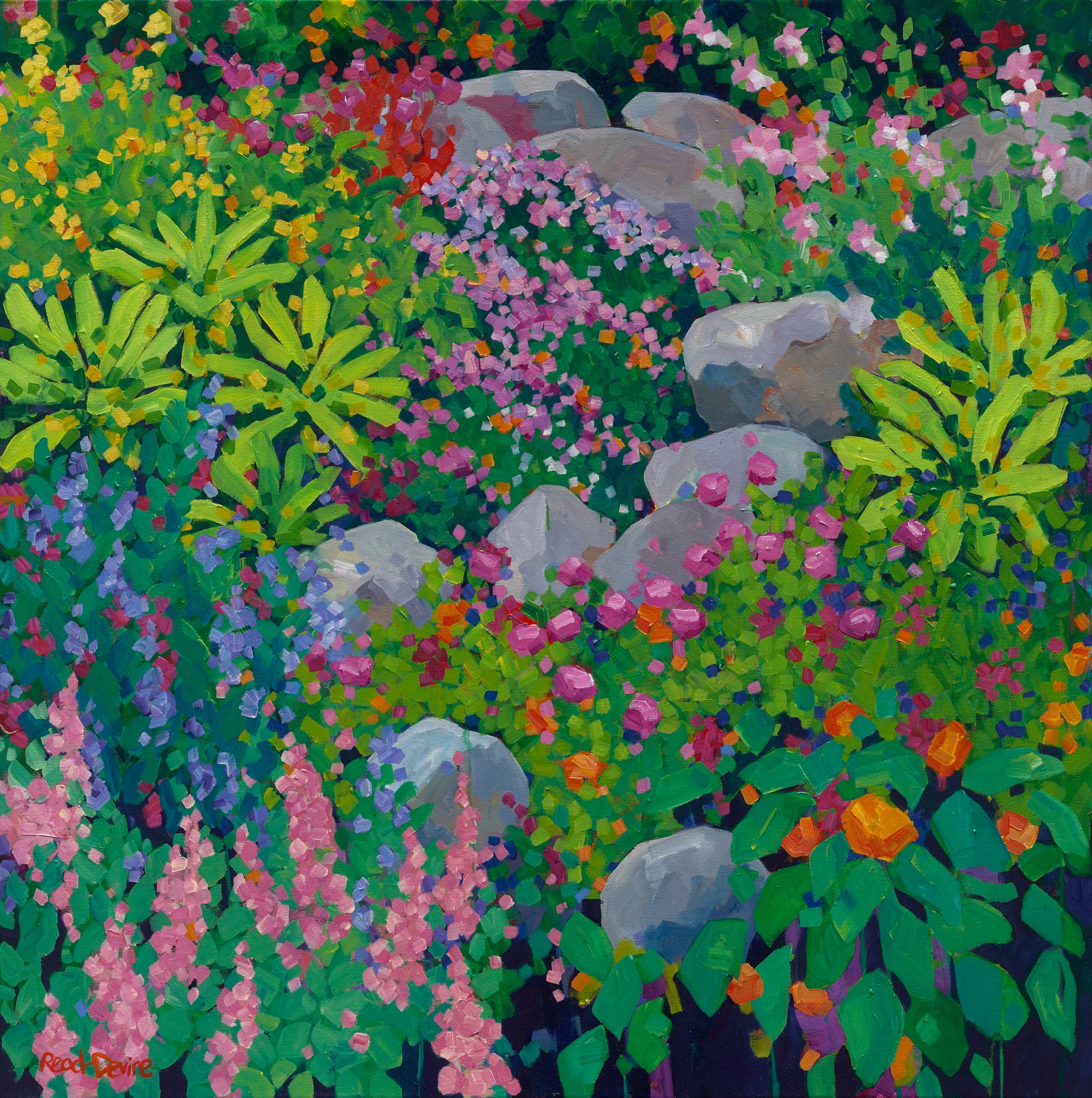 For me, painting is all about the process. With an electric palette and layered application of brush strokes, I portray a vivid interpretation of the subjects around me that inspire. My focus is colour. I rejoice in seeing its subtleties in nature and then interpret it onto canvas in a saturated form.