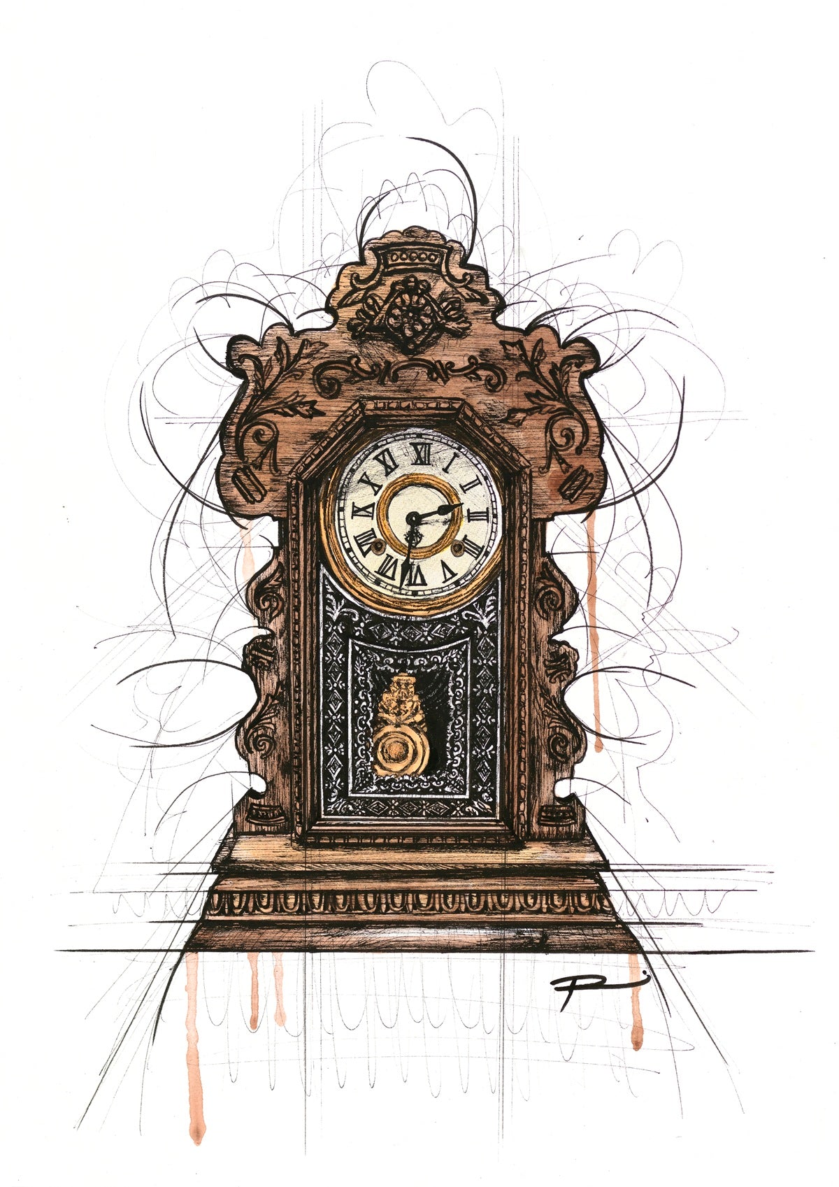 A passion for pens and a love of freedom and movement can be seen in Mitchell’s largest body of works. In her Scratch Series wildlife pieces and still life alike show fine detail and lose line working together in harmony to bring the subject to life. A portion of these work combine pen and acrylic paint offering a mixed media contemporary take on the traditional portrait and still life.