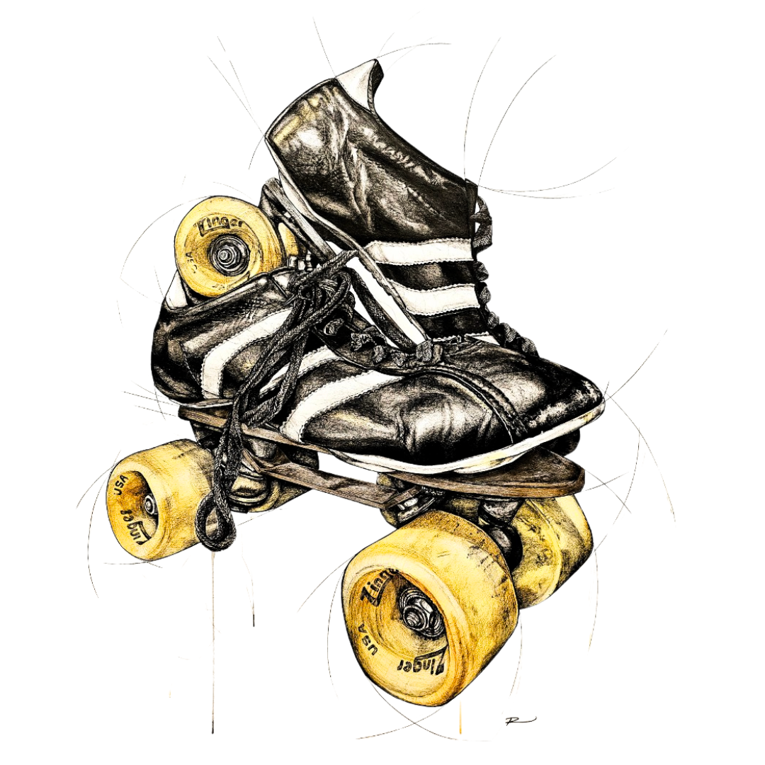 Self-taught artist, Renée Mitchell’s finely-hones line work reference a detailed knowledge of technical drawing combined with a love of expression and movement.