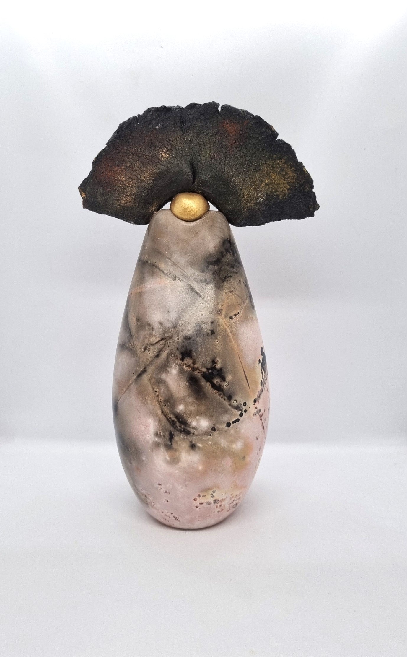 My previous experience in the engineering world has also played a role in shaping my artistic approach. The precision required in engineering has infused my pieces with meticulous attention to detail. However, it is the process of Saggar firing that grants me a wonderful sense of freedom. My work, mostly wheel thrown, has to be polished with a stone by hand then smoke fired. The process allows my pieces to be natural in feel, often mistaken for stone yet warmer to the touch. The absence of glazes lets the earth shine through with the knowledge that each piece is as individual as a fingerprint. Allowing you to appreciate and respect the elements that have created each totem. I merely aid nature by giving her a canvas to work on.
