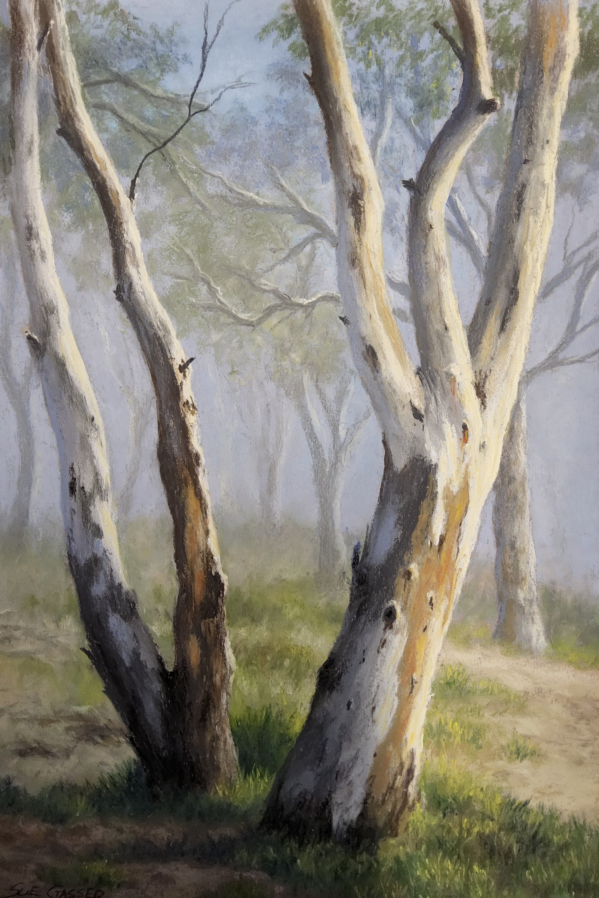 In her thirties she completed a Showcard Ticketwriting course which introduced her to pastels, she never looked back to picking up a paint brush again realising she was a drawer not a painter. Although 'topping ' the course Sue ventured into the art world.