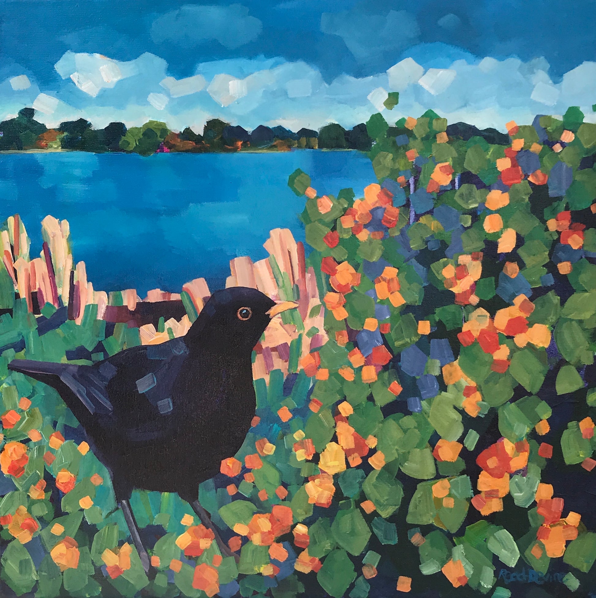 "I wish the viewer to be transported into the imagery I have created. If it is a landscape, to visually wander around and feel uplifted and entranced by colours and shapes that I have been inspired to depict. If it is a bird, then see them as characters in a story I have set the scene for, with the viewer being the co-writer of the story."