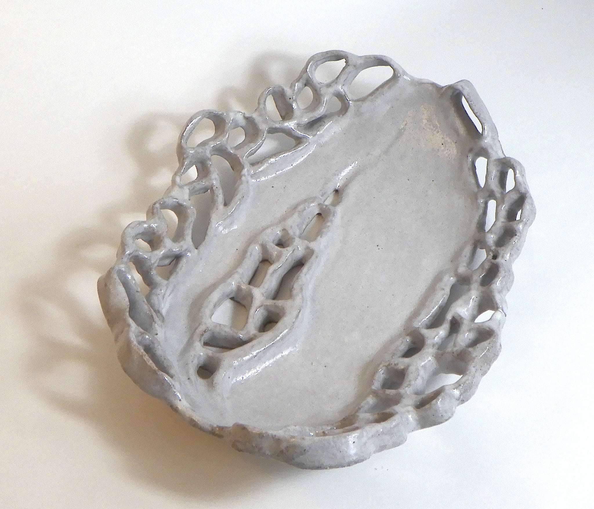 This work is part of a series inspired by the quiet complexity of rock pools — places where water pauses, life gathers, and change is constant. Hand-built using a lattice-like technique, the form captures a sense of organic erosion and growth, echoing the natural patterns found along the shoreline.