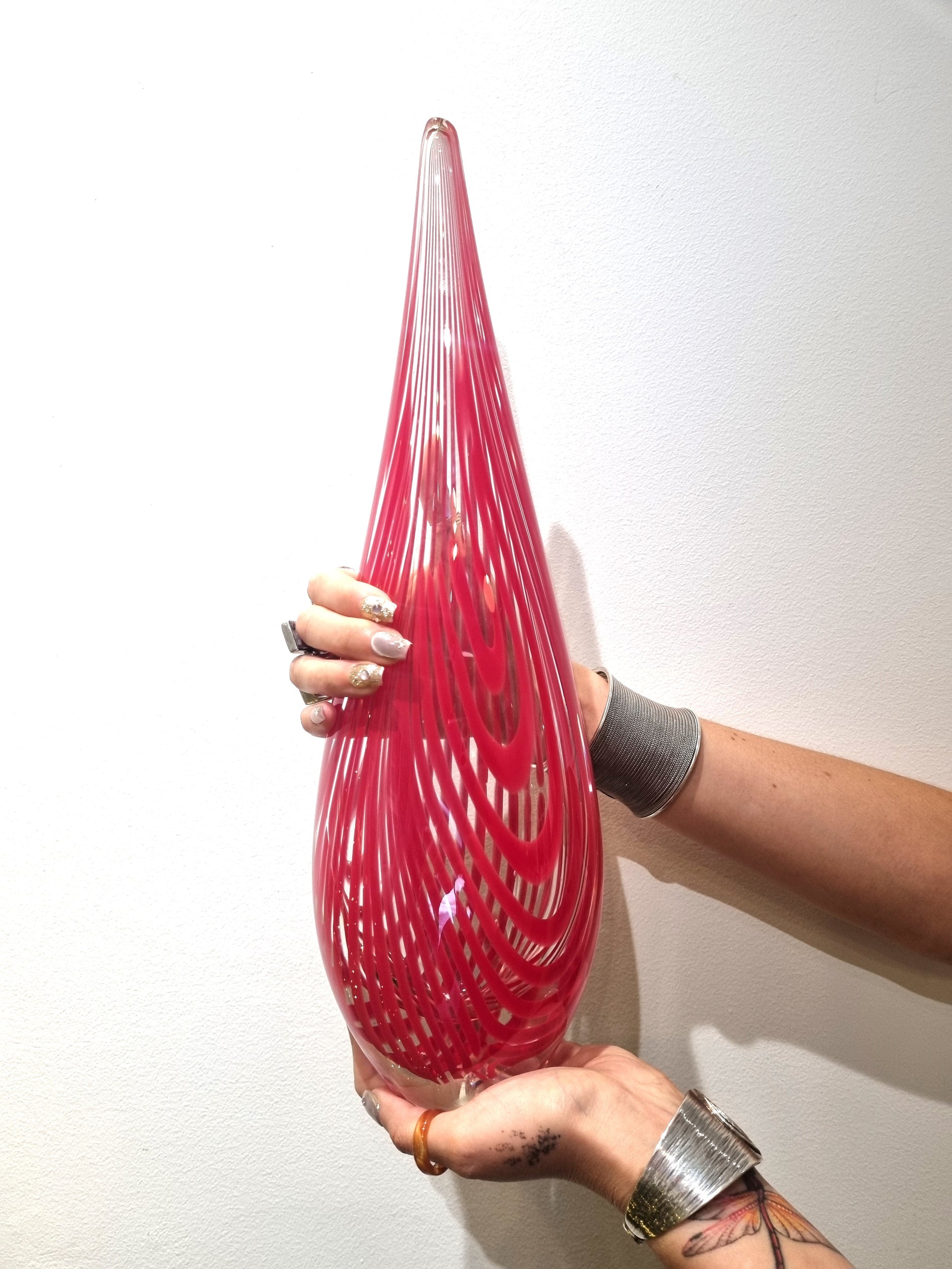 The process of shaping the glass is often time consuming and requires patience, but there are critical moments of intense activity and concentration. Each step in the process affects the outcome and the piece is often quite different to what is planned. Working with hot glass can be strenuous and exhausting. A large piece can take over an hour to make. After the blowing is finished the piece is cracked off the pipe and placed in an annealing oven which stops the glass from breaking. It's exciting to unload the oven a couple of days later and actually touch the glass for the first time. Then there's the job of cutting and grinding the pieces and putting them on display. Glass is durable but fragile, cool and smooth to the touch, alive with light and colour. Hot glass is a very challenging material to work with, technically and artistically. I find it most rewarding to turn a creative idea into a unique piece of art.