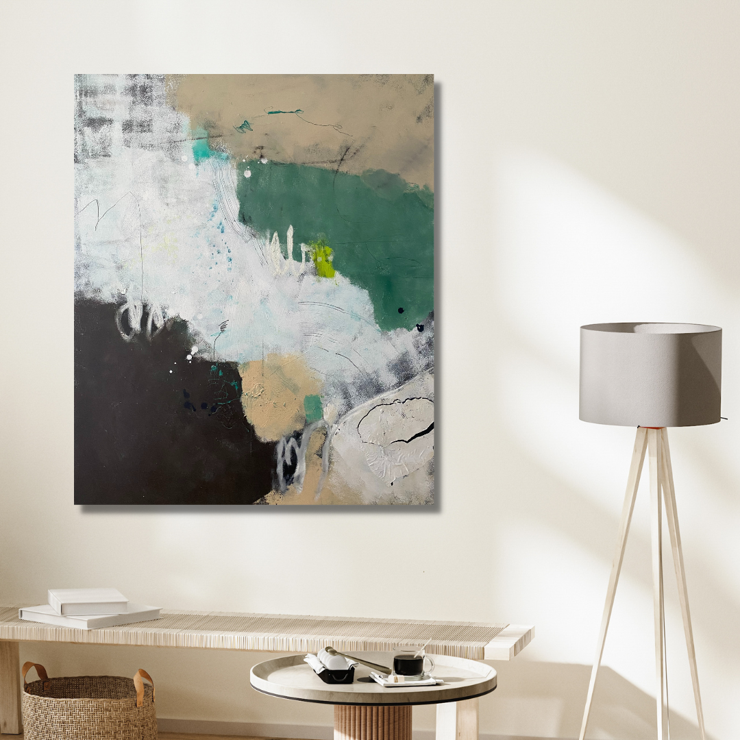 Abstract art is always an unfolding mystery. I always set off in one direction, but the creative process has other ideas and before long I’m on a detour. An unexpected but welcome detour. I can have a vision of where I want a painting to go but without notice the artwork has pulled me in another direction. This is the dance.